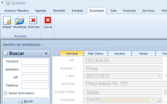 Haz clic sobre el botón Modificar para poder realizar los cambios y escoge la pestaña Acceso de la ventana de empleados: