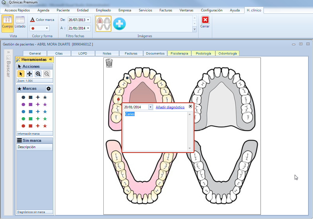 - Posibilidad de añadir varias imágenes para utilizar como cuerpo donde crear las intervenciones y diagnósticos.