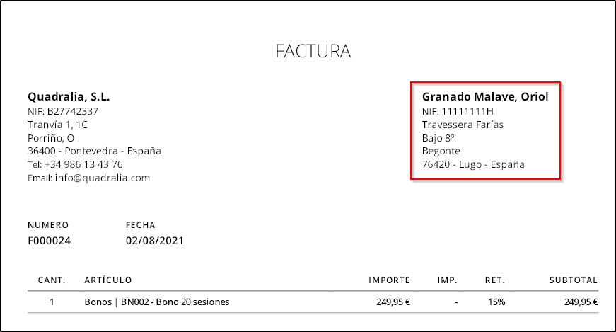 Si vuelves a visualizar la factura, puedes comprobar que los datos incorrectos se han actualizado.