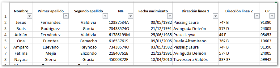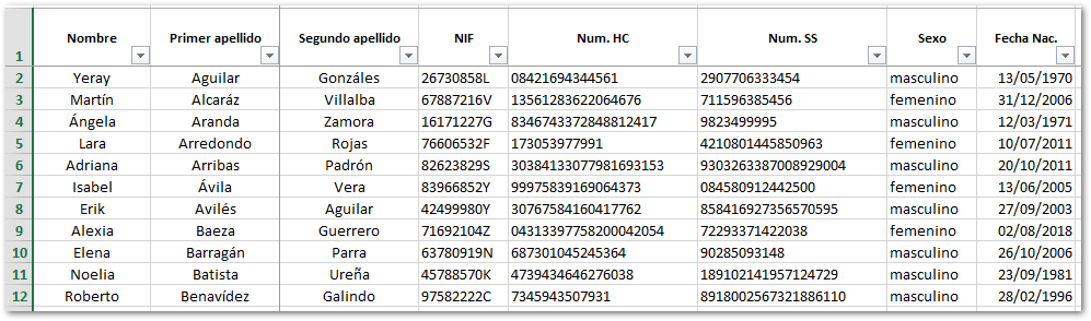 El listado de pacientes creado tiene el siguiente formato: