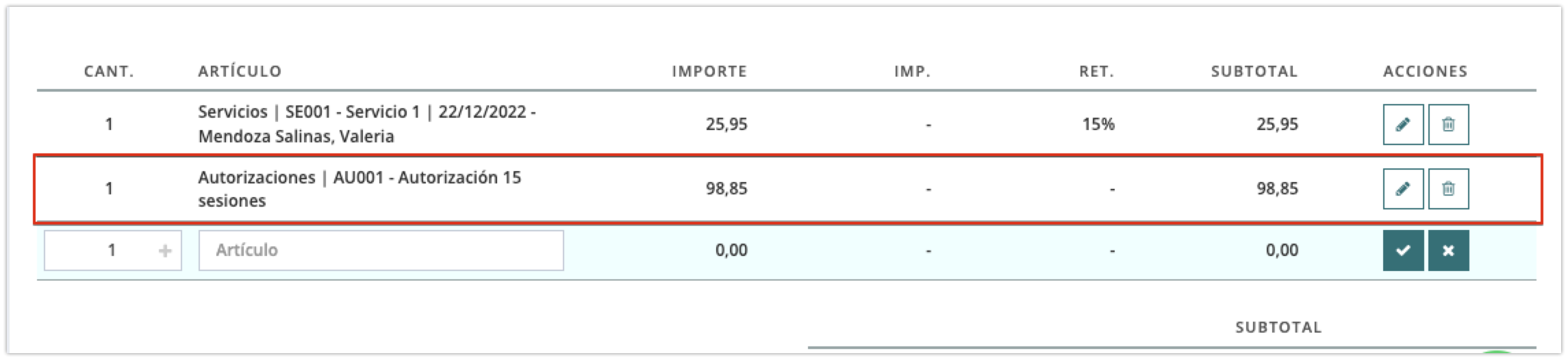 En una factura ya notificada he añadido una nueva línea.