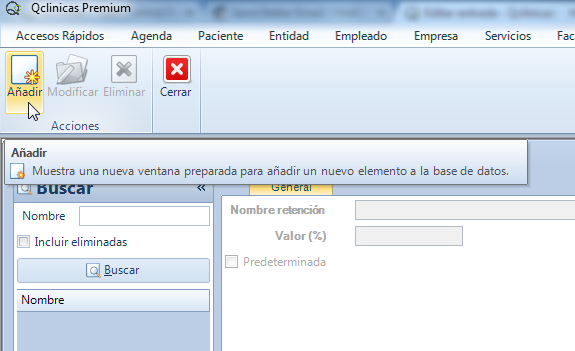 2) Hacer clic en el botón Añadir para crear una nueva retención
